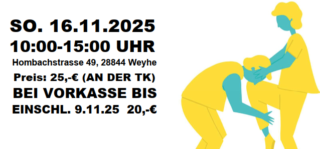 Erneut bieten Annika und ich einen Lehrgang zur Selbstverteidigung hier in Weyhe an, konzipiert für alle Interessierten M / W / D ab 16 Jahren an.